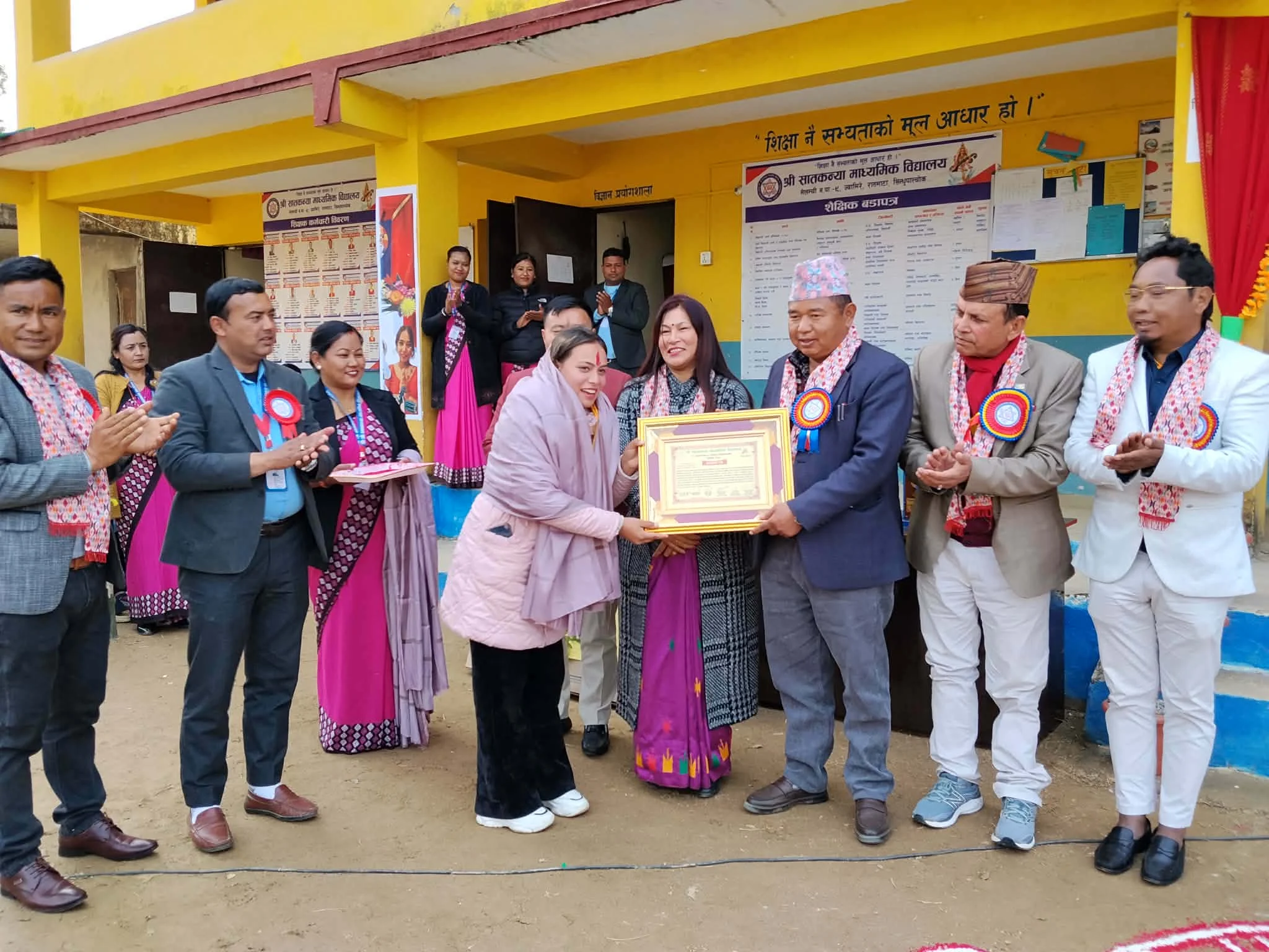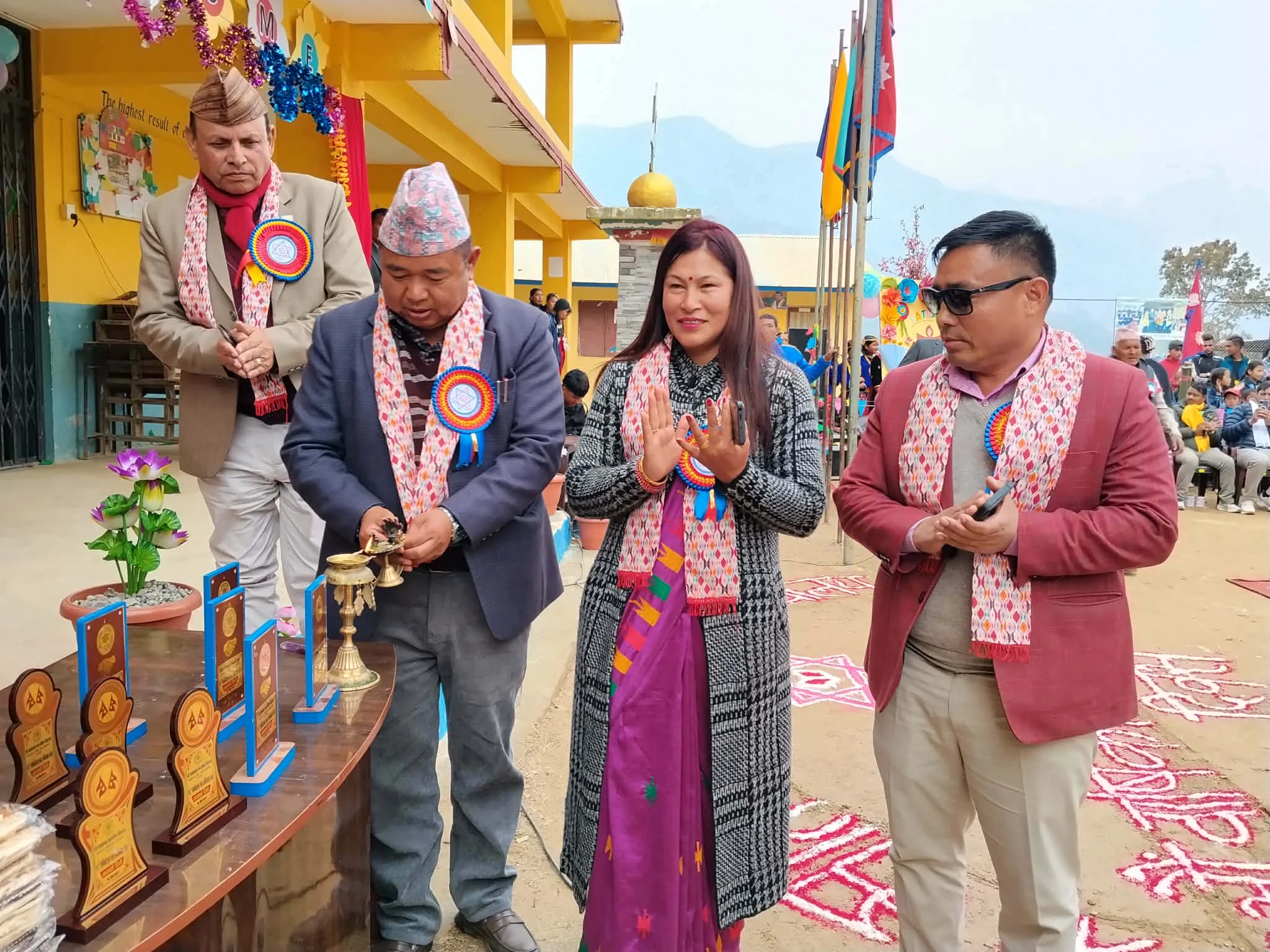 प्रधानाध्यापक जनक अधिकारीले प्रगति प्रतिवेदन तथा व्यवस्थापन समितिका अध्यक्ष सुनबहादुर घलेकाे सभापतित्वमा सम्पन्न कार्यक्रममा नेपाल आइडल गंगा साेनाम र युवा व्यवसायी अनिलकुमार तामाङलाई सम्मान गरिएकाे थियाे ।